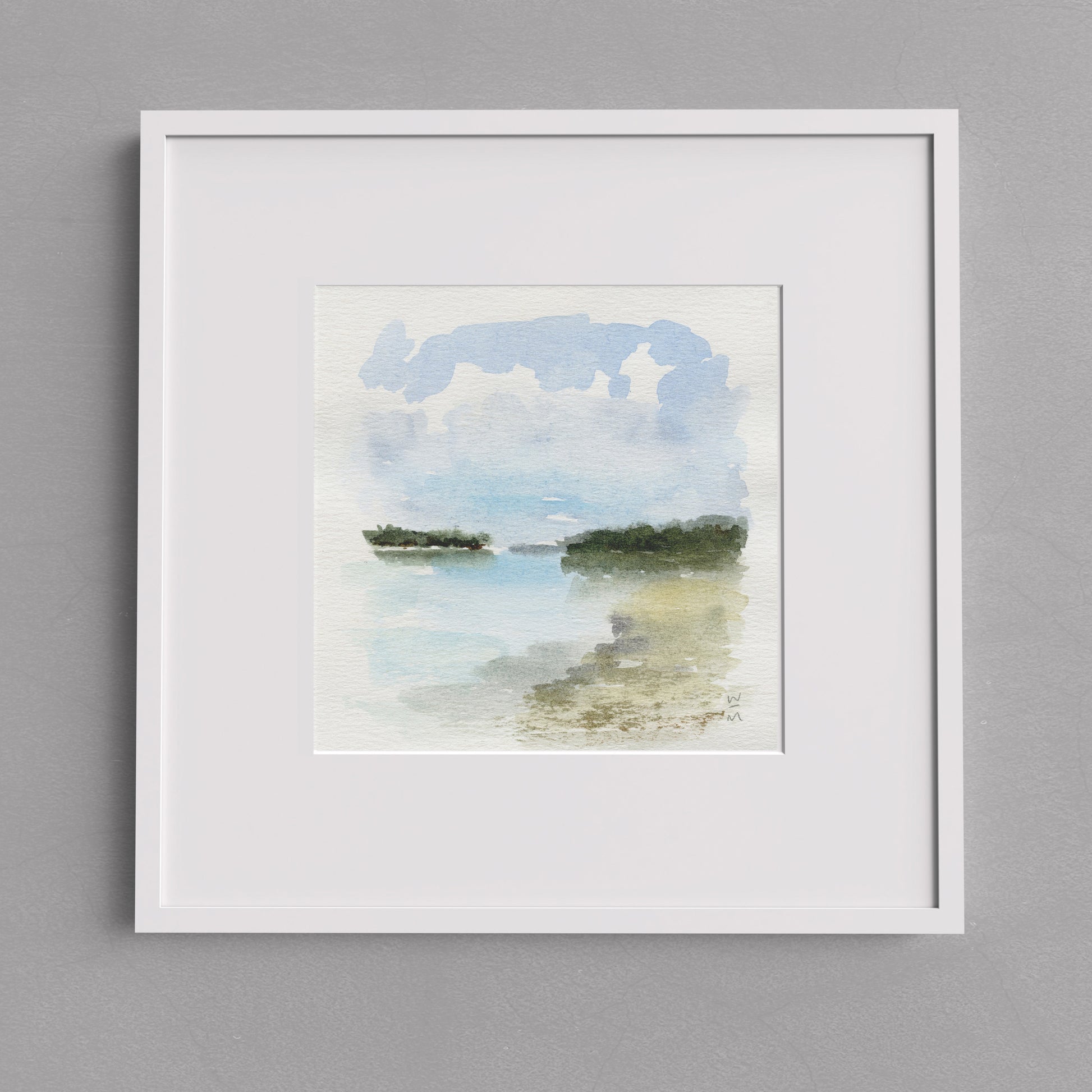 Inspired by Sydenham Lake and the Point, this original watercolour art is unframed on handmade watercolour paper. Approximately 6” x 6”. Art will be signed on the front and also signed and dated on the back upon purchase. This artwork comes unframed. Example frame is framed in a 9.75" x 9.75" frame.